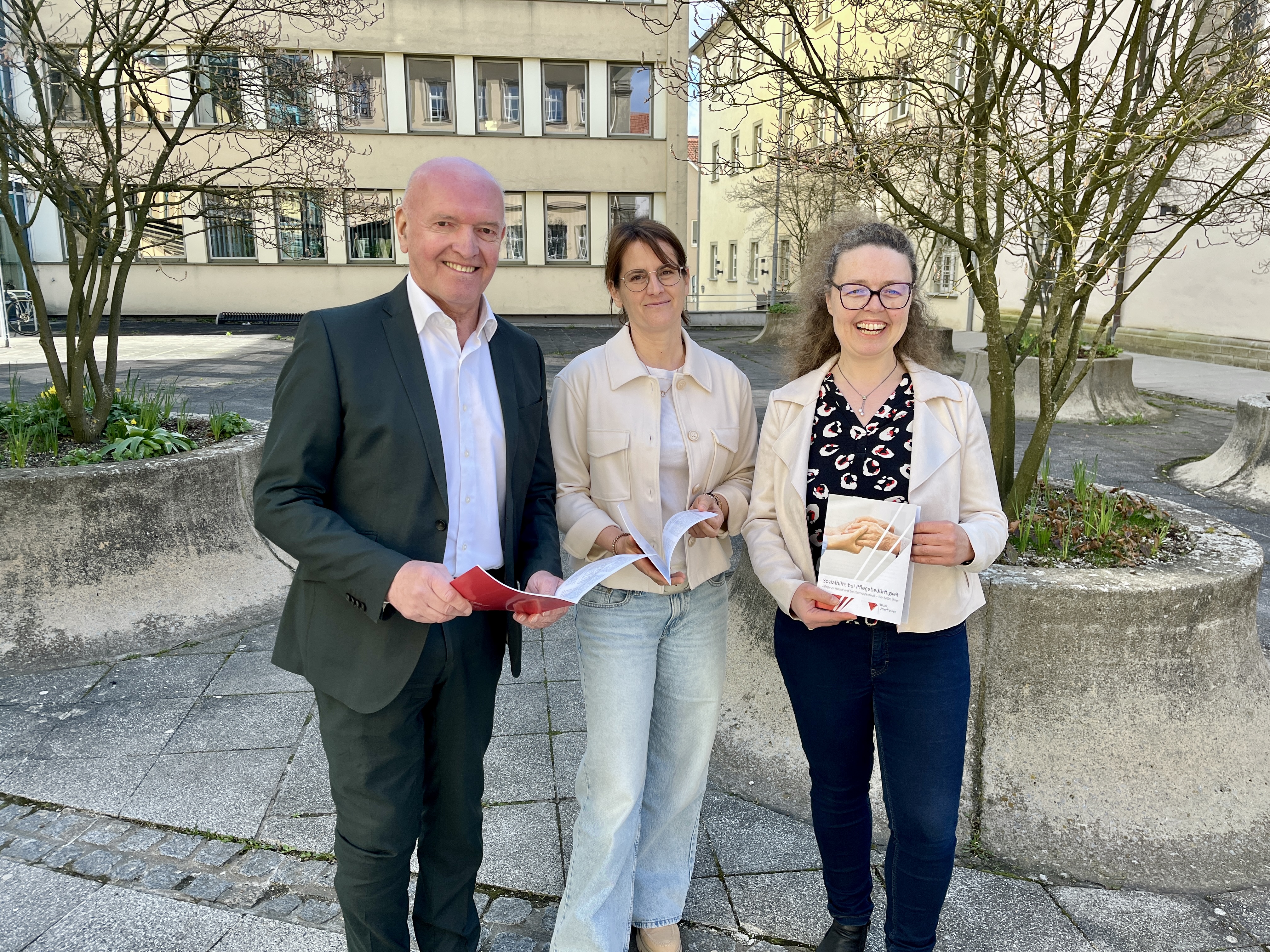 Bildunterschrift: Landrat Thomas Habermann und daneben Sabine Wenzel-Geier (Leiterin Pflegestützpunkt Rhön-Grabfeld) begrüßten Kerstin Sendner (rechts) vom Bezirk Unterfranken, die zum Thema „Hilfe zur Pflege“ berät.